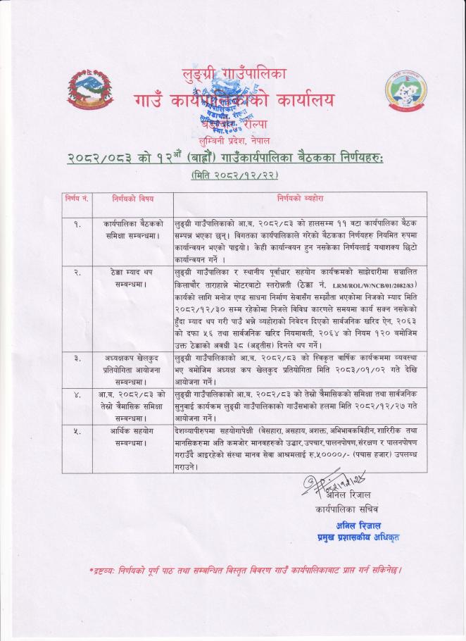 निर्णय नं.१२ (२०८२/८३, २०८२।१२।२२)