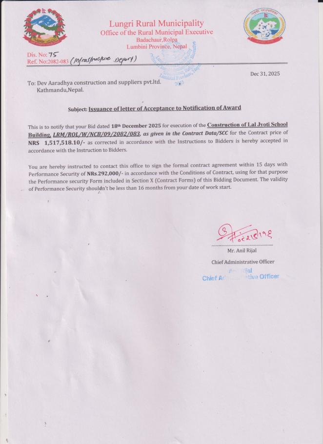लुङग्री गाउँपालिका, गाउँ कार्यपालिकाको कार्यालय, वडाचौर, रोल्पा, लुम्बिनी प्रदेश