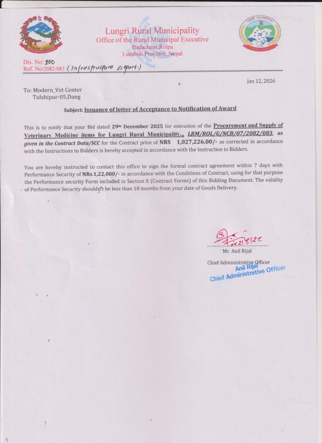 लुङ्ग्री गाउँपालिकाको कार्यालयमा प्रयोग हुने सवारी साधन (सञ्चालन तथा व्यवस्थापन) कार्यविधि, २०८२