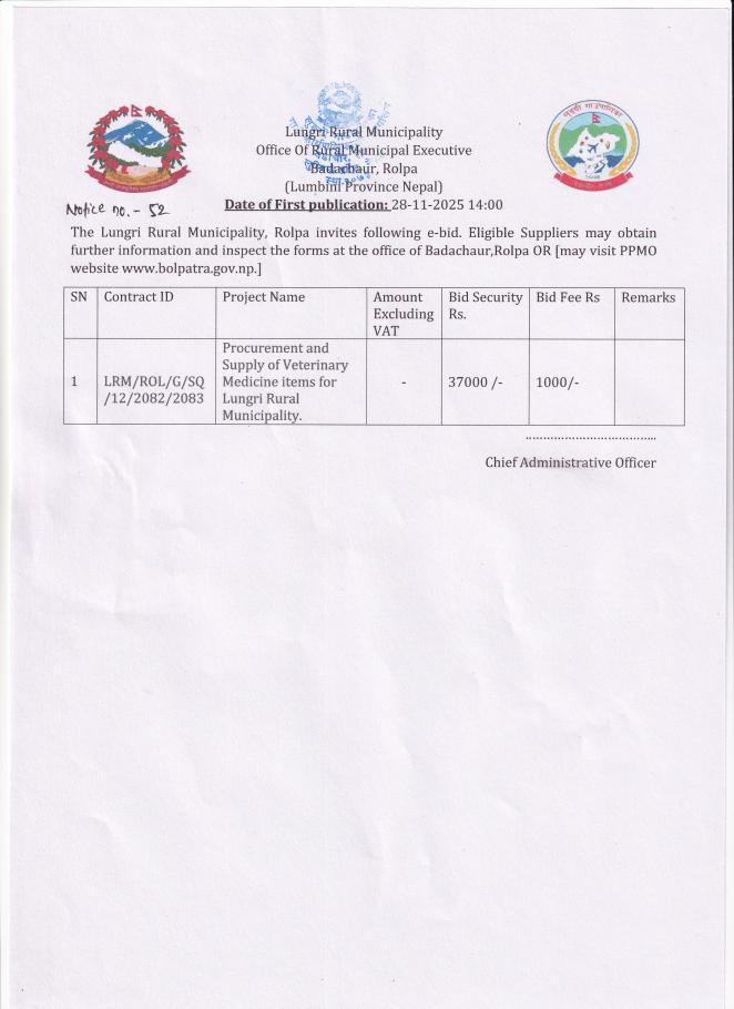 सार्वजनिक खरिद/बोलपत्र सूचना