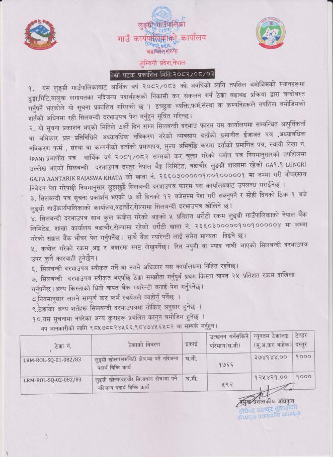 सार्वजनिक खरिद/बोलपत्र सूचना