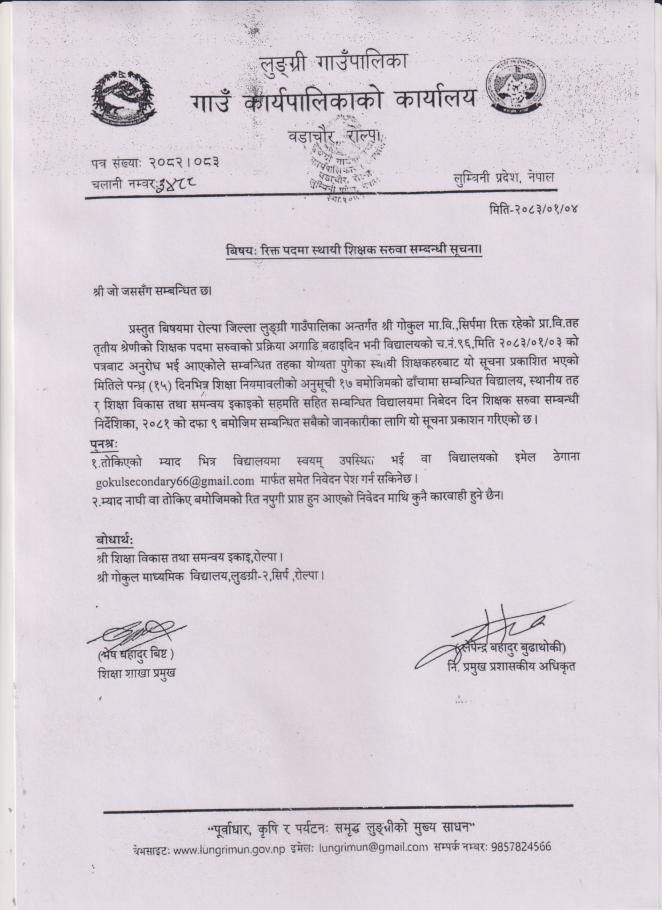 » रित्त पदमा स्थायी शिक्षक सरुवा सम्बन्धी सूचना