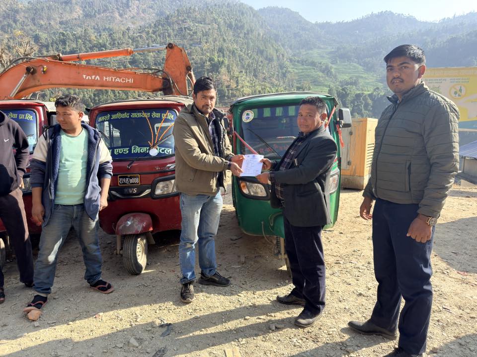गाउँपालिकामा दर्ता भएका अटो संचालकलाई आधिकारिक प्रमाणपत्र र स्टिकर प्रदान गरिएको छ ।