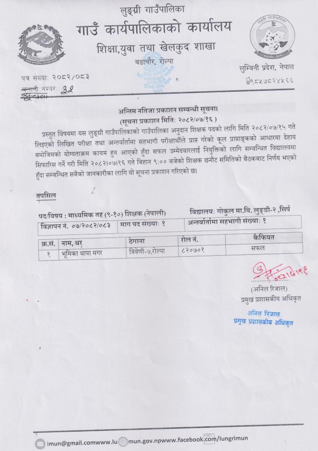अन्तिम नतिजा प्रकासन सम्बन्धी सूचना