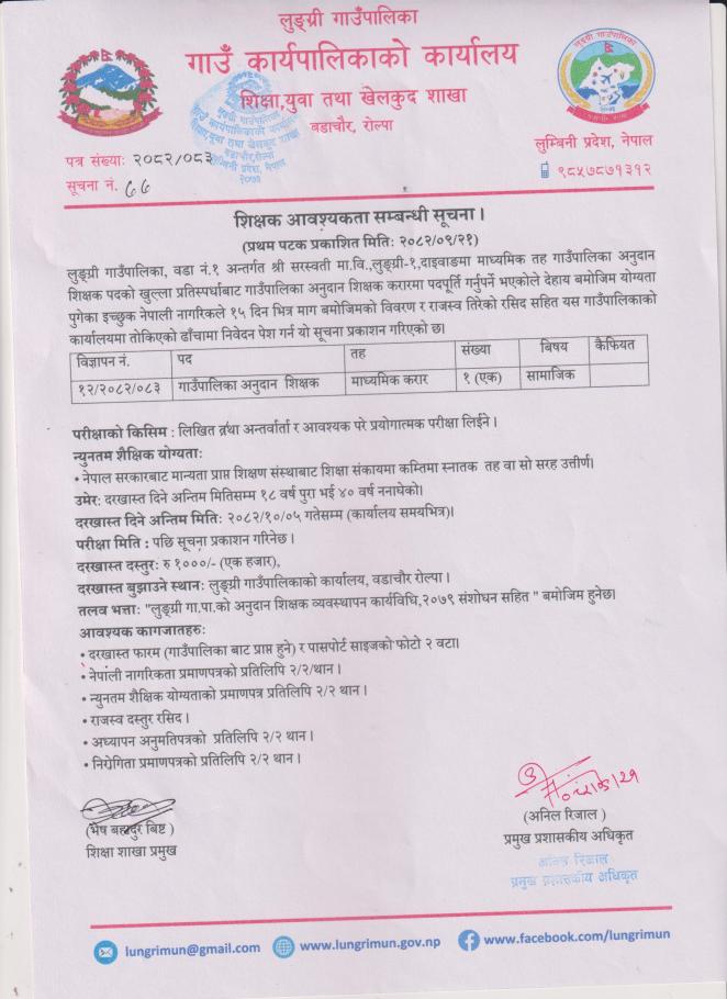 » शिक्षक आवस्यकता सम्बन्धी सूचना