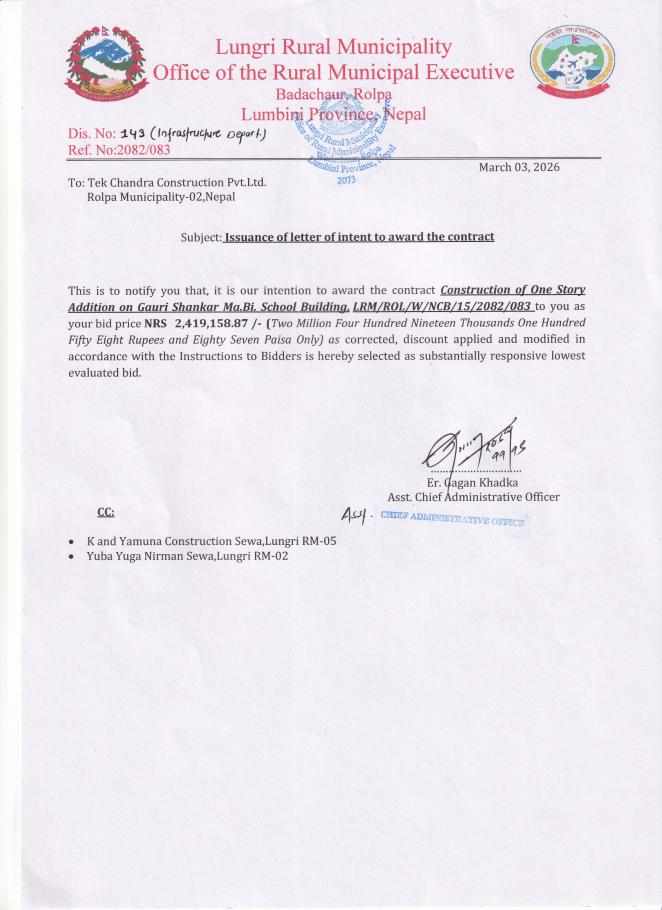 लुङग्री गाउँपालिका, गाउँ कार्यपालिकाको कार्यालय, वडाचौर, रोल्पा, लुम्बिनी प्रदेश